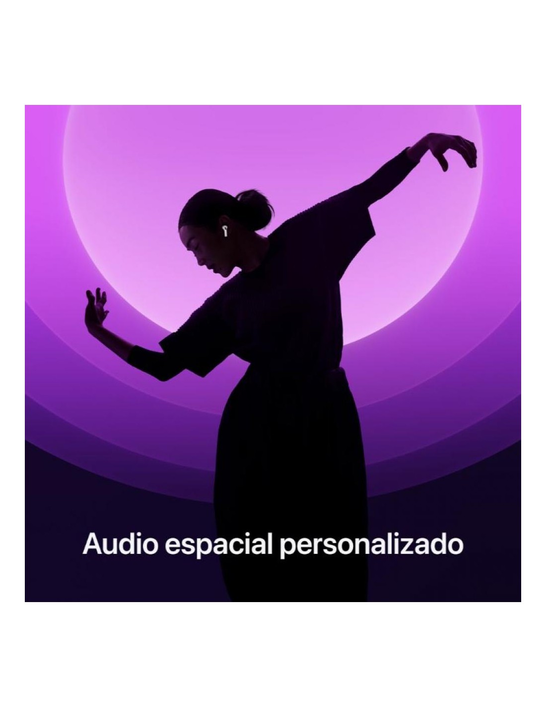 El audio espacial personalizado con seguimiento dinámico de la cabeza reposiciona el sonido a tu alrededor y convierte la música, las series, las películas o los juegos en experiencias realmente tridimensionales.