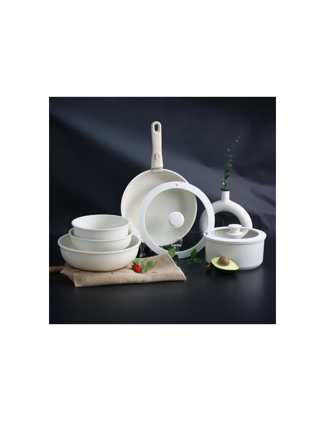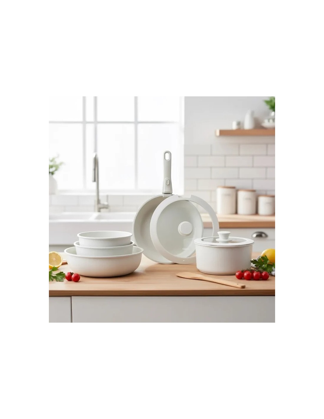 Esta batería incluye todo lo que necesitas para cocinar como un chef: sartén pequeña, sartén grande, wok, cacerola pequeña, cacerola grande, mango extraíble, tapa de silicona grande y tapa de silicona pequeña. Cada pieza está fabricada con materiales de alta calidad.