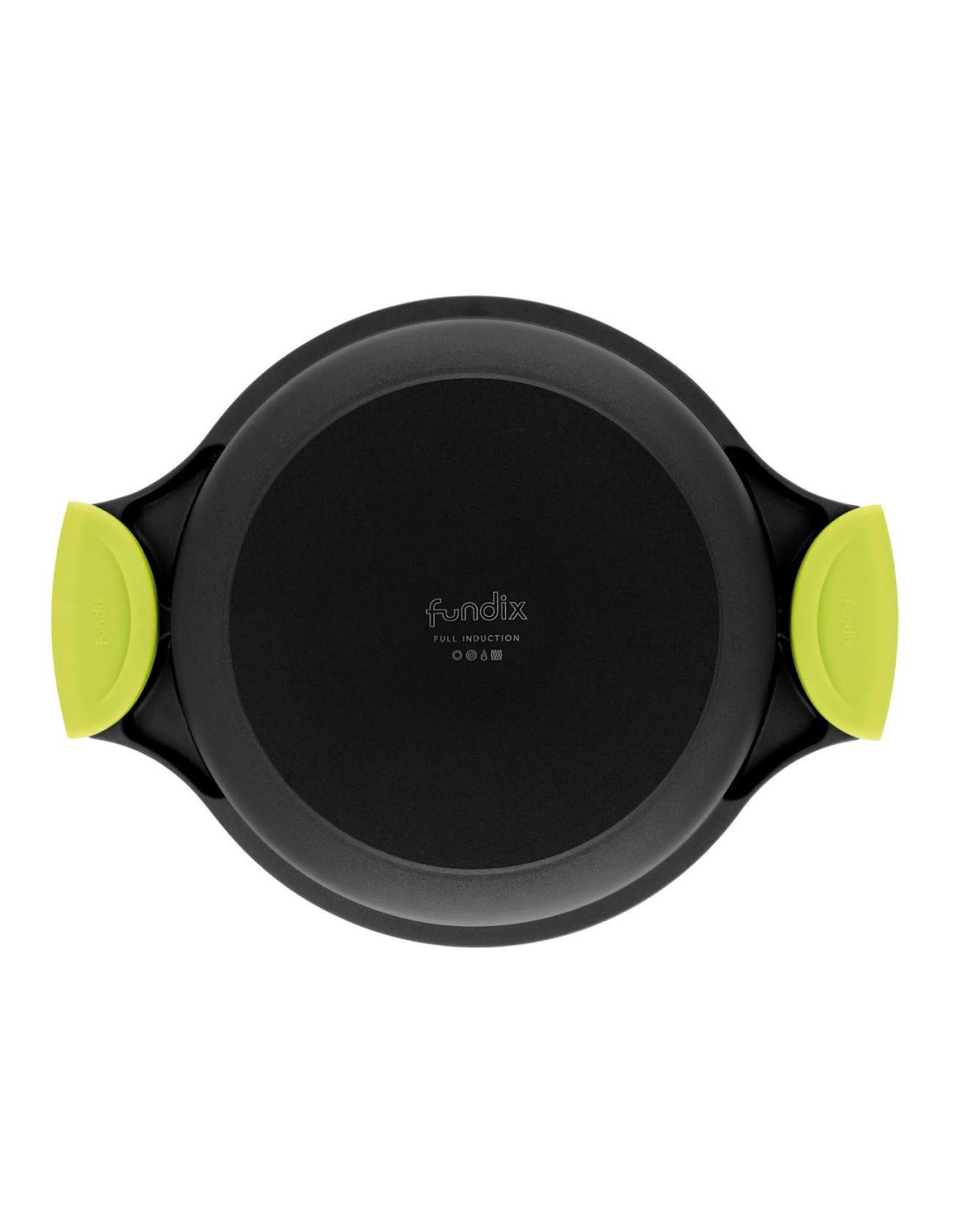 Tapadera con aro de silicona y salida de vapor. Pomo de acero inoxidable. Recubrimiento antiadherente libre de PFOA de alta calidad y resistencia. Cuerpo de aluminio fundido. Base full induction. Asas de silicona.