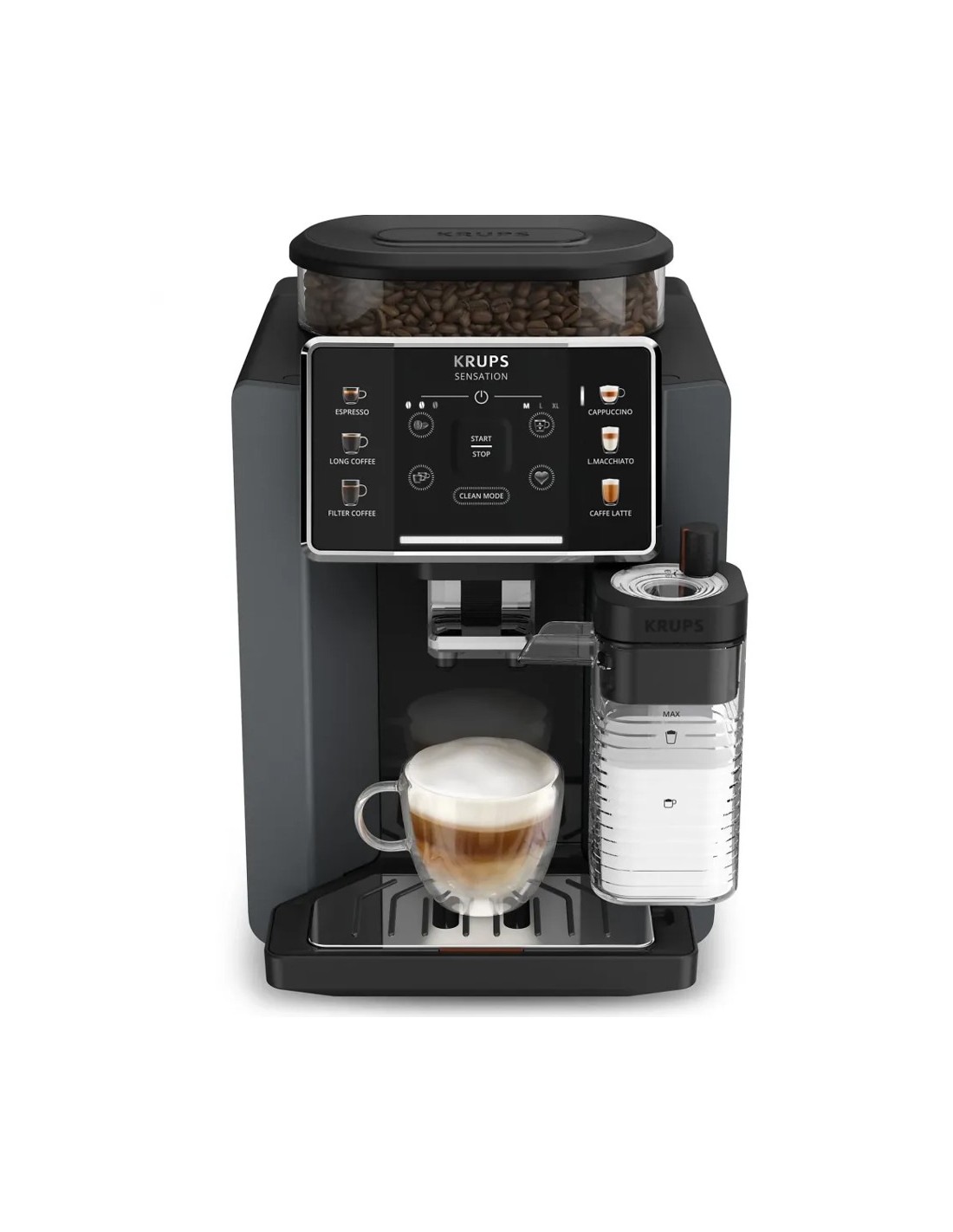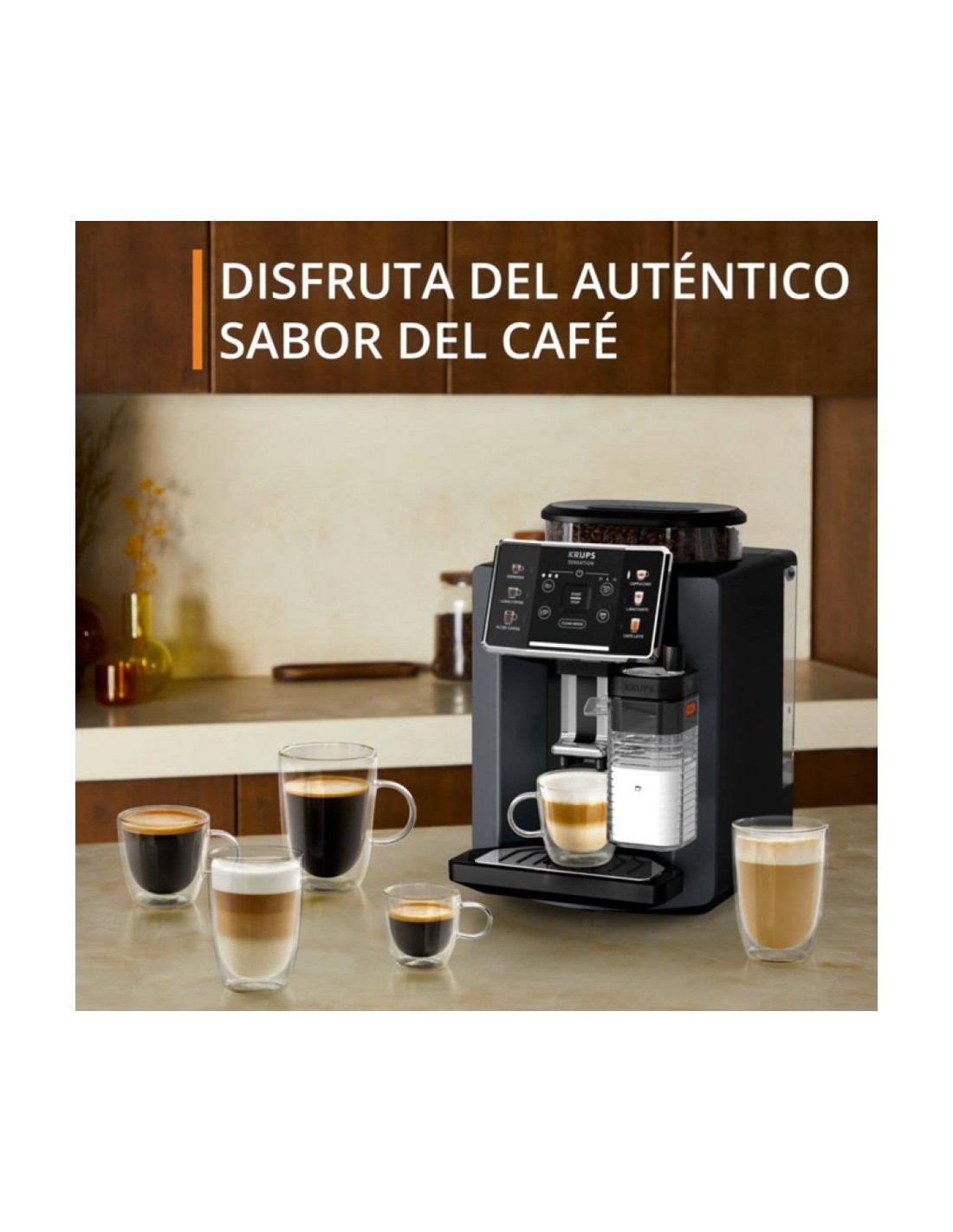 6 tipos de café y lattes elaborados a base de granos de café recién molidos, optimizadas por las tecnologías de Krups para unos resultados deliciosos.