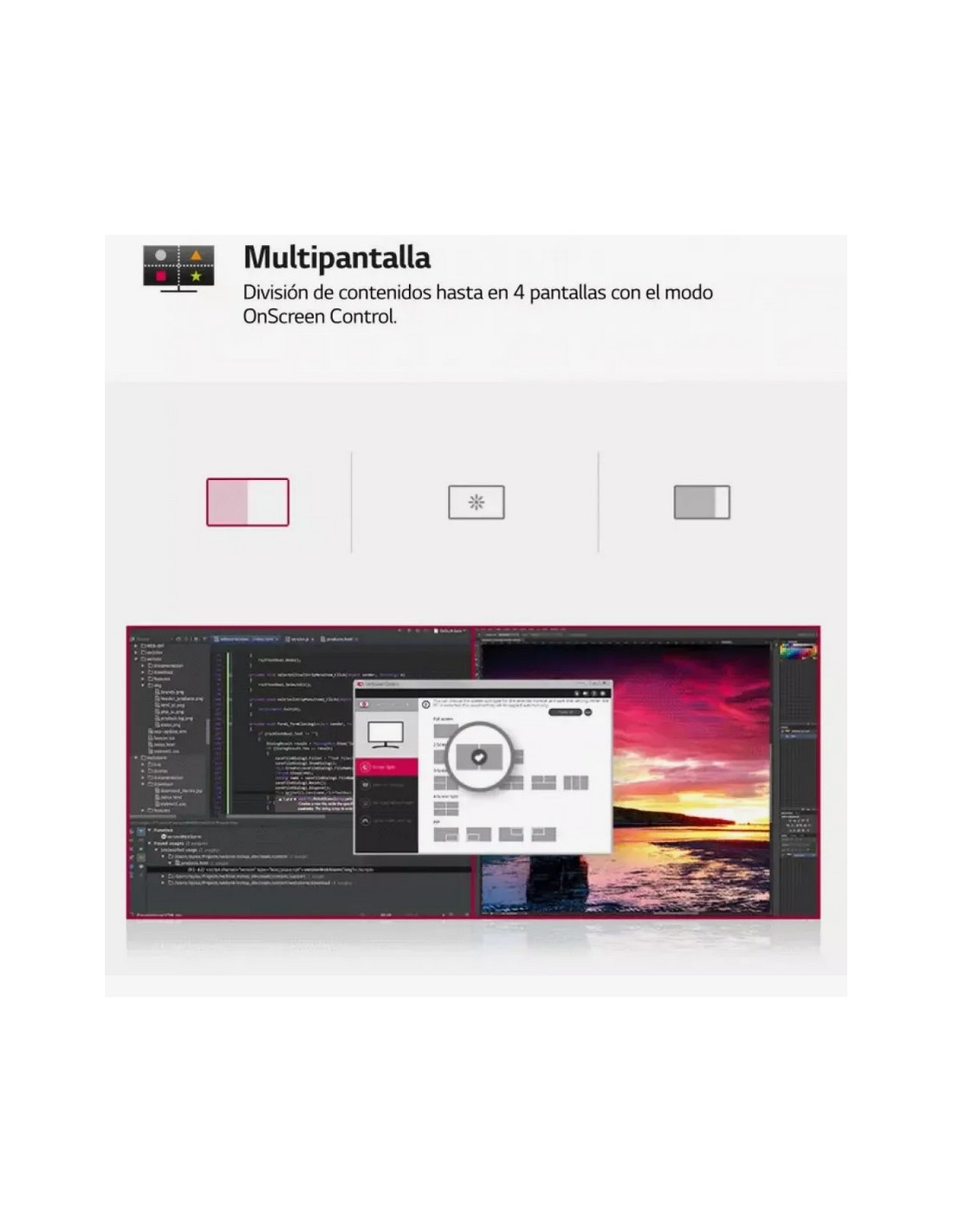 - Visualiza el contenido de hasta 2 dispositivos simultáneamente en modo "Picture by Picture".