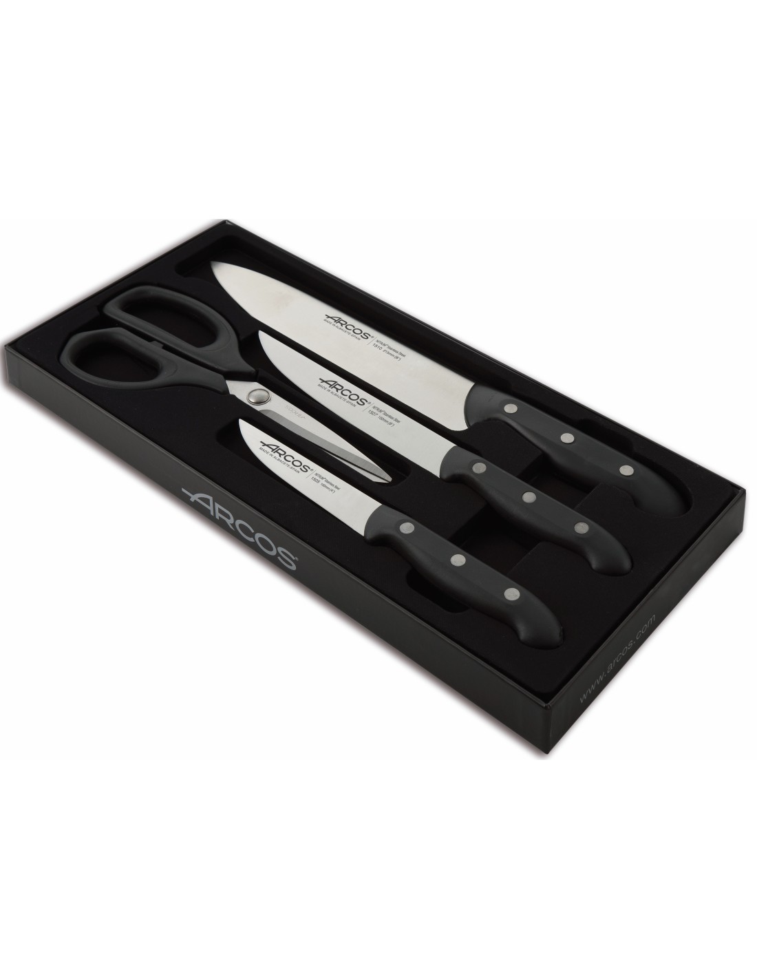 Juego de cocina, compuesto por tres cuchillos, verduras 100 mm, cocina 150 mm, chef 210mm y unas tijeras