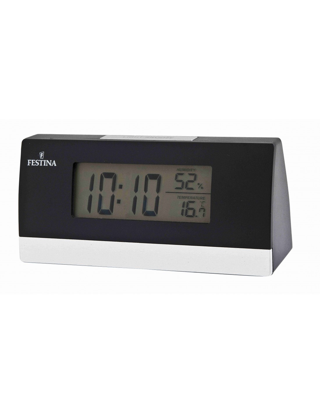 Reloj digital con LED azul, temperatura y humedad. Réveil digital avec LED bleu, température et humidité. Digital alarm clock with blue LED, temperature and humidity. Color: Negro. Medidas: 15x5x6.5 cm.