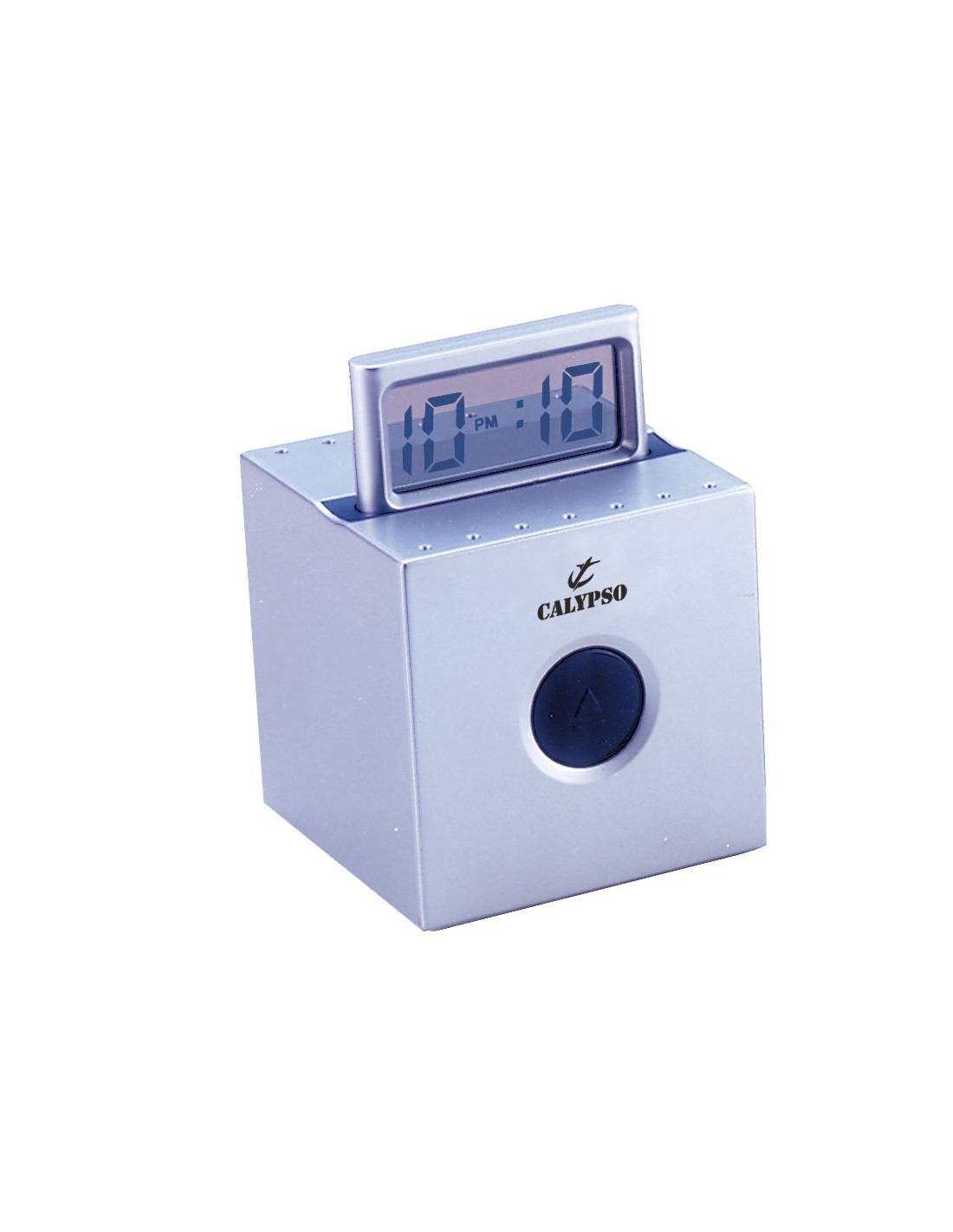 Radio reloj con repetición y linterna en parte inferior. Radio-Réveil, répétition et lampe. Radio alarm clock with snooze and torchlight. Radiowecker mit, Snooze-Funktion und Leselampe. Color: Plateado. Medidas: 6x6x6 cm