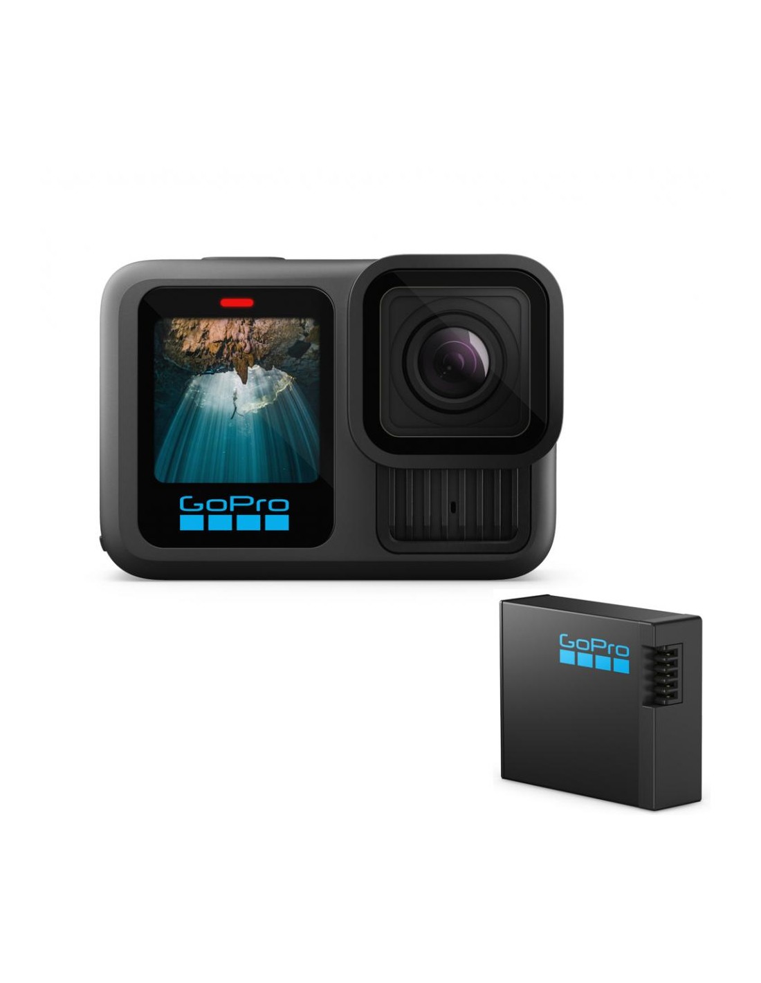Baterías de última generación para un mayor tiempo de reproducción. La nueva batería Enduro de 1900 mAh, más grande, tiene un conector de batería rediseñado específicamente para la HERO13 Black que ofrece una mayor eficiencia y tiempos de ejecución más largos: hasta 2,5 horas de grabación continua. La batería Enduro para la HERO13 Black no es compatible con las GoPro antiguas.