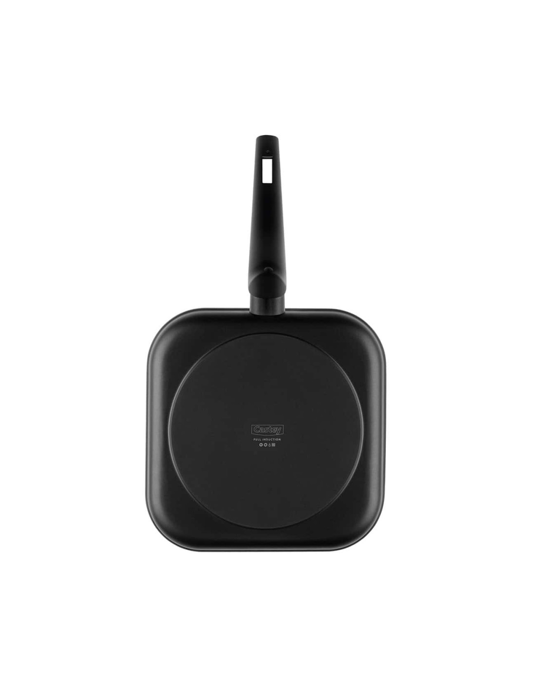 Recubrimiento anti-adherente con partículas de titanio. Base full inducción. Cuerpo de aluminio. Mango ergonómico. Encaje especial para girar tortilla.