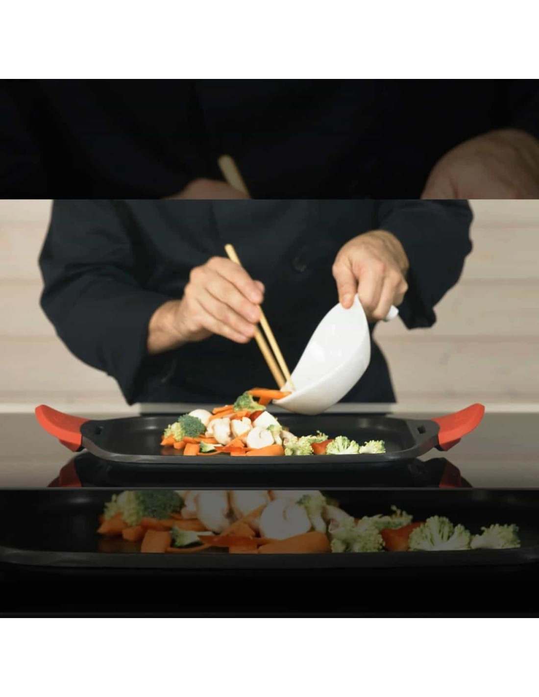 • Su amplia superficie de cocción permite cocinar distintos ingredientes a la vez sin mezclar sabores.