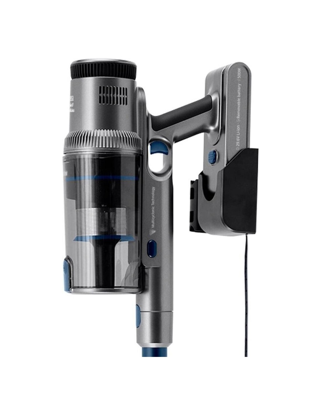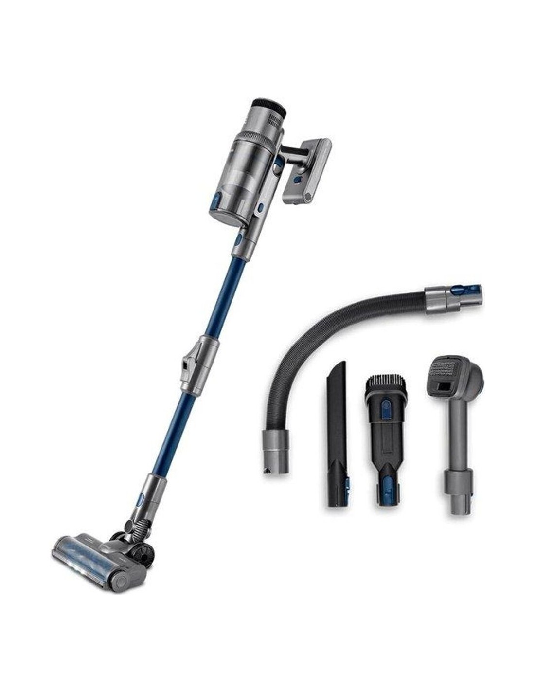 El aspirador de escoba Ufesa U7 Digital Animal es un dispositivo recargable que combina tecnología avanzada y facilidad de uso. Equipado con un motor digital brushless, ofrece mayor resistencia al desgaste y una vida útil prolongada en comparación con motores convencionales. Su tecnología multiclónica optimiza la separación de partículas, manteniendo una potente succión con una presión máxima de aspiración de 26KPa. Este modelo incluye un cepillo motorizado multisuperficie con luz, diseñado para atrapar la suciedad de manera eficiente. Cuenta con cuatro niveles de potencia de aspiración: Eco, Medio, Turbo y Auto, con una luz indicadora que cambia de color según el modo seleccionado. El cepillo antienredos es de fácil extracción, lo que facilita su limpieza. Además, el sistema Auto Clean ajusta automáticamente la potencia según la suciedad detectada. La pantalla digital proporciona información clara sobre la carga restante de la batería, el modo de trabajo, la alerta de depósito de polvo lleno, el indicador de bloqueo del cepillo y el recordatorio de carga. Incluye accesorios especiales para mascotas, que permiten peinar y aspirar el pelo de los animales antes de que caiga al suelo, así como herramientas para ranuras y esquinas, un cepillo para muebles 2 en 1 y un soporte de pared.