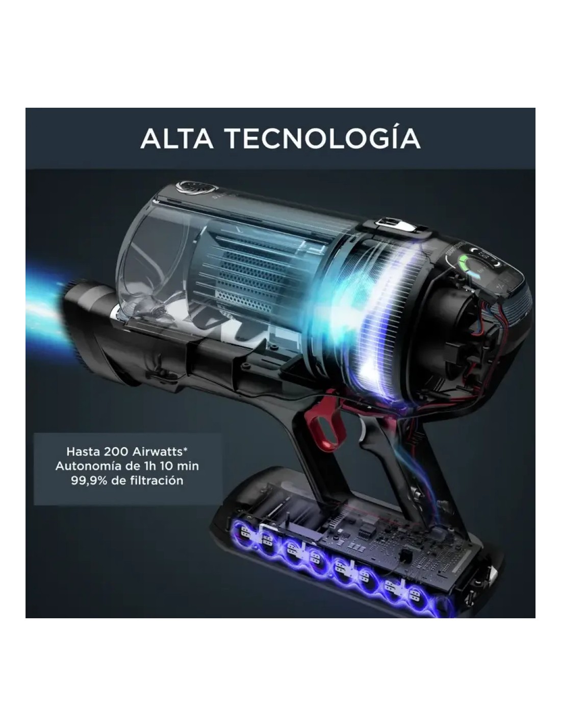 - ALTO RENDIMIENTO: potente succión de hasta 200 airwatts,* batería de larga duración con hasta 1 h y 10 min** de autonomía y filtración del 99,9 % de las partículas finas, los alérgenos y los ácaros del polvo.