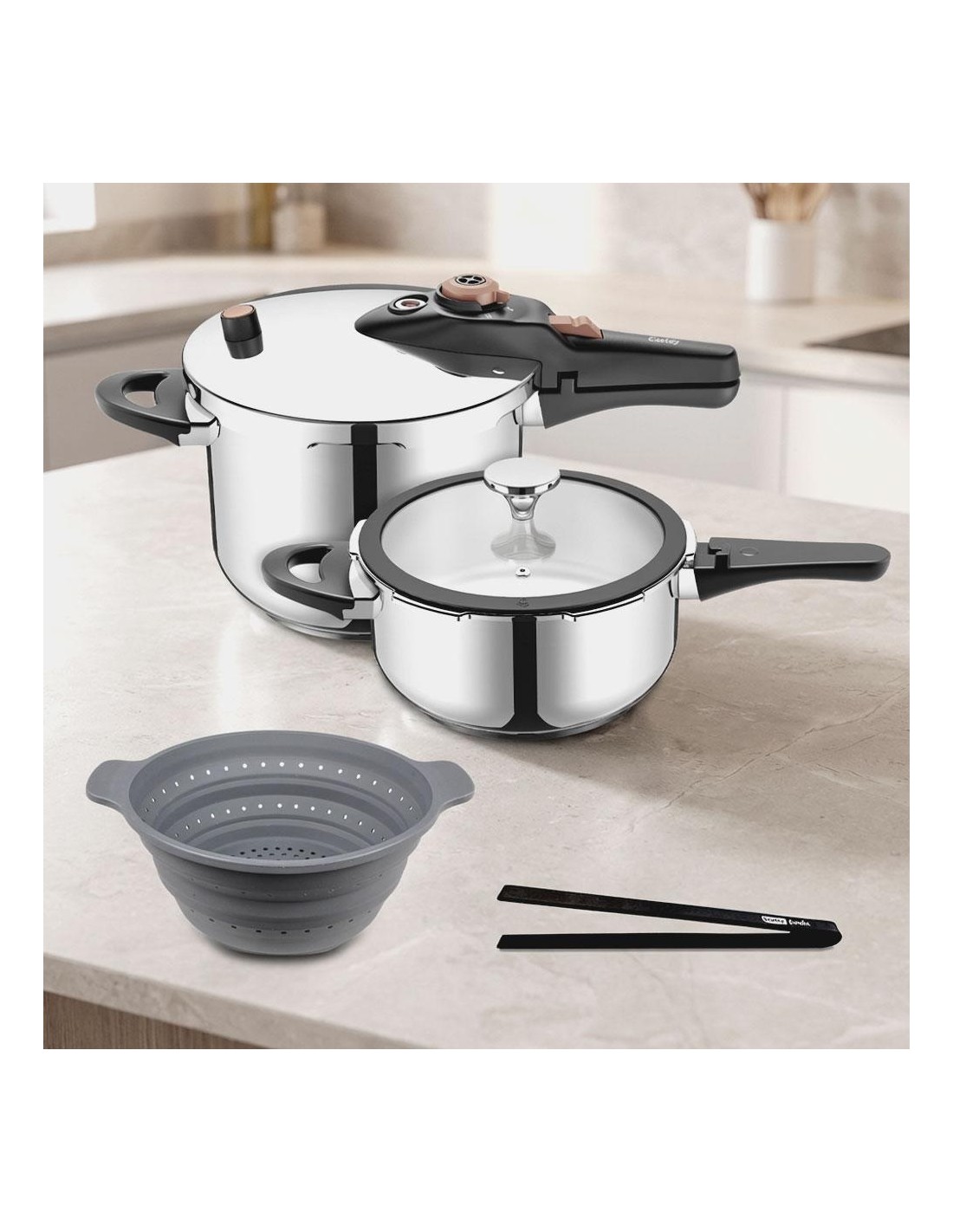 SET DUO OLLA PRESION NOVA CASTEY + PINZA + VAPORERA