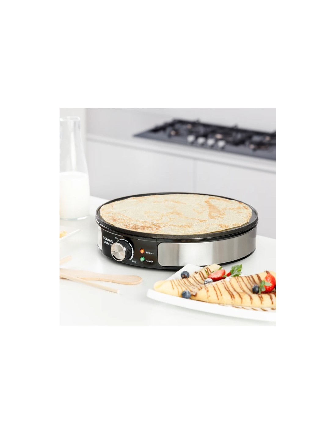 Prepara crepes grandes y uniformes con la crepera Crepe & Fun y su superficie de 30 cm de diámetro, ideal para recetas dulces y saladas.
