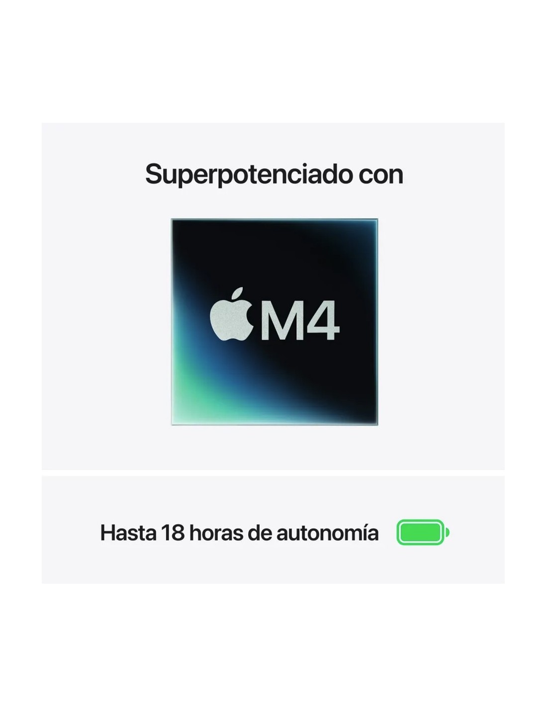 - SUPERPOTENCIADO CON EL M4 — El chip M4 de Apple multiplica la velocidad en todo lo que haces, como usar varias apps a la vez, editar vídeos o disfrutar de juegos con mucha carga gráfica