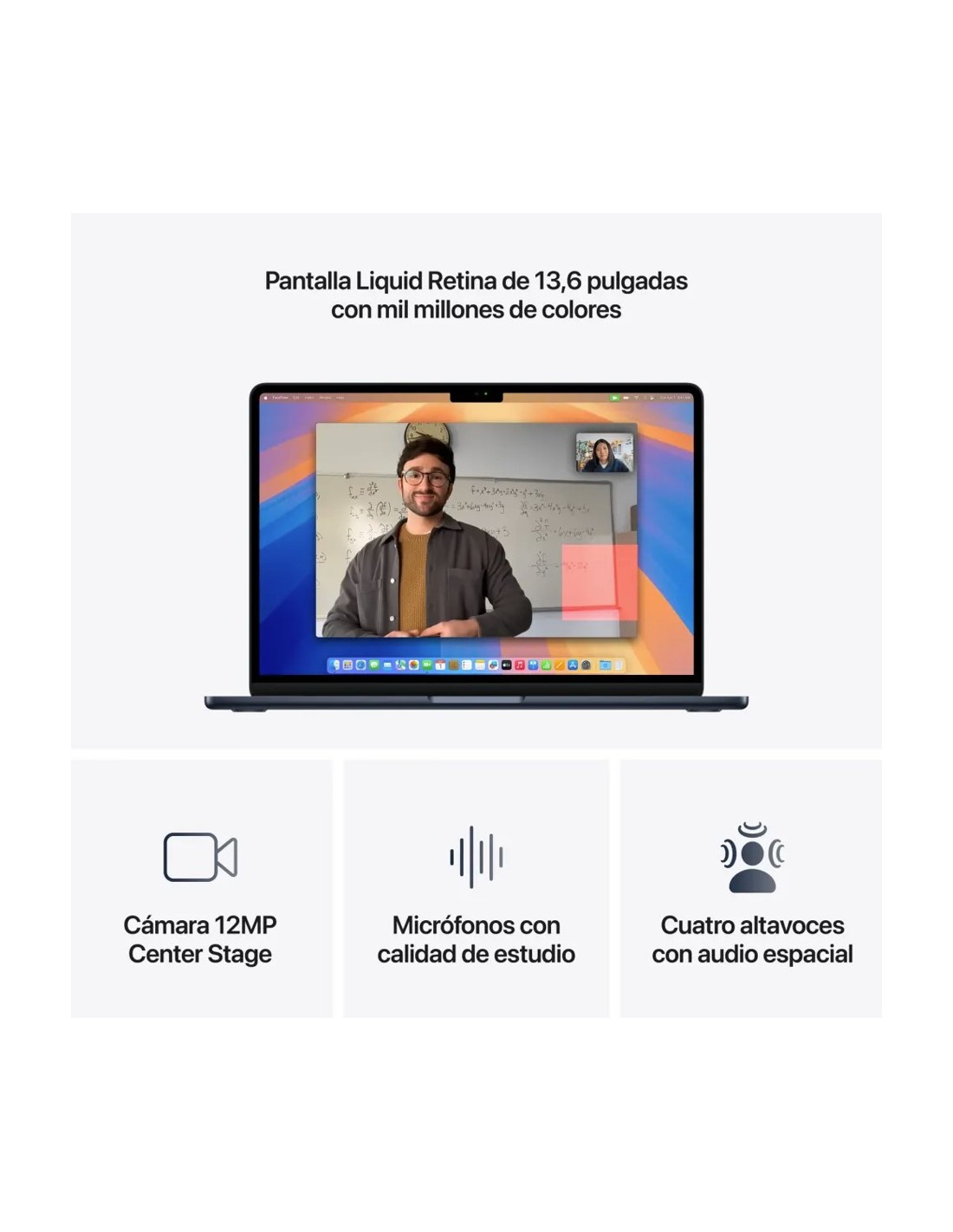 - UNA PANTALLA BRILLANTE — La pantalla Liquid Retina de 13,6 pulgadas admite 1.000 millones de colores. Las fotos y las pelis muestran un contraste y un detalle nunca vistos, y el texto se ve supernítido.