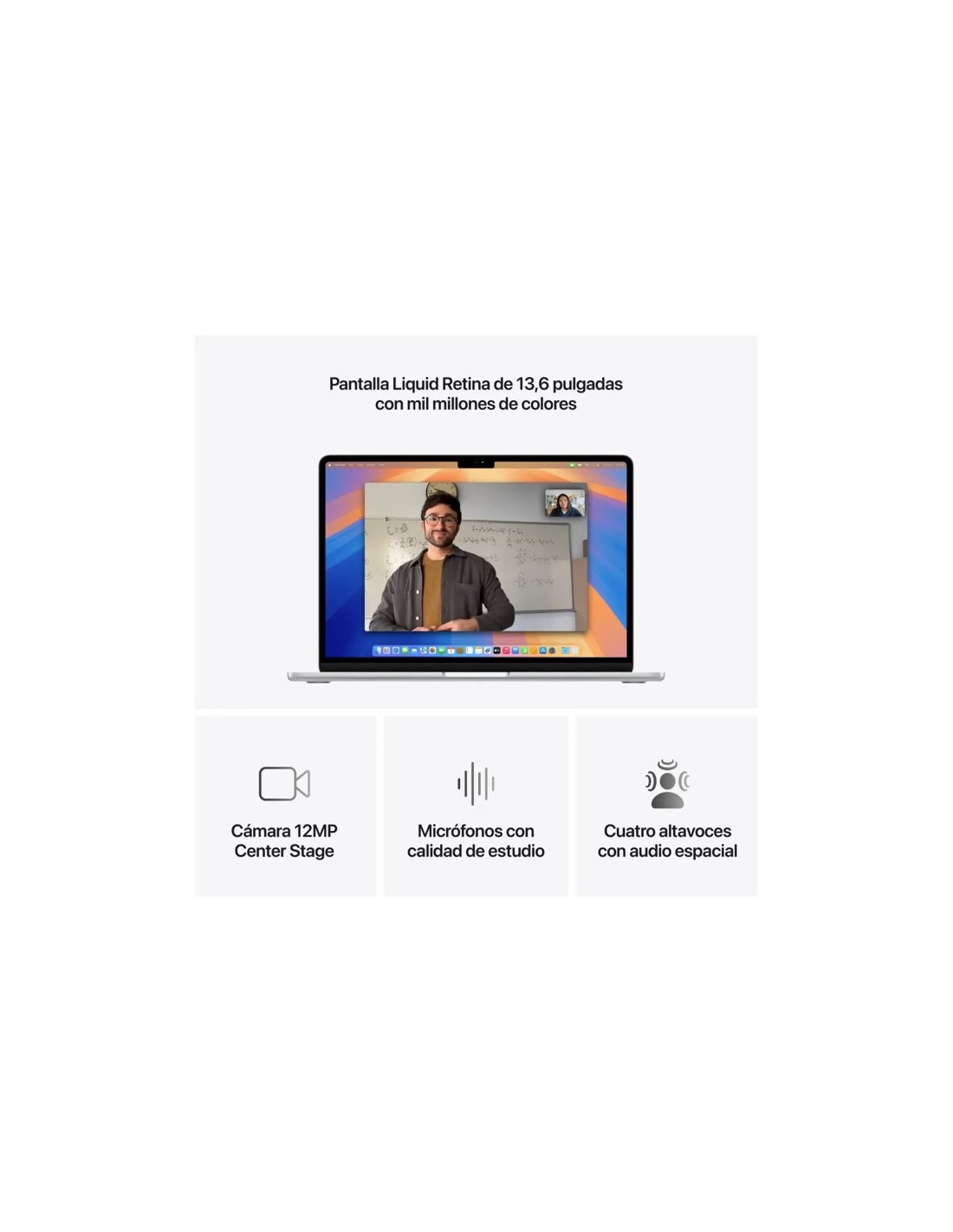 - UNA PANTALLA BRILLANTE — La pantalla Liquid Retina de 13,6 pulgadas admite 1.000 millones de colores. Las fotos y las pelis muestran un contraste y un detalle nunca vistos, y el texto se ve supernítido.