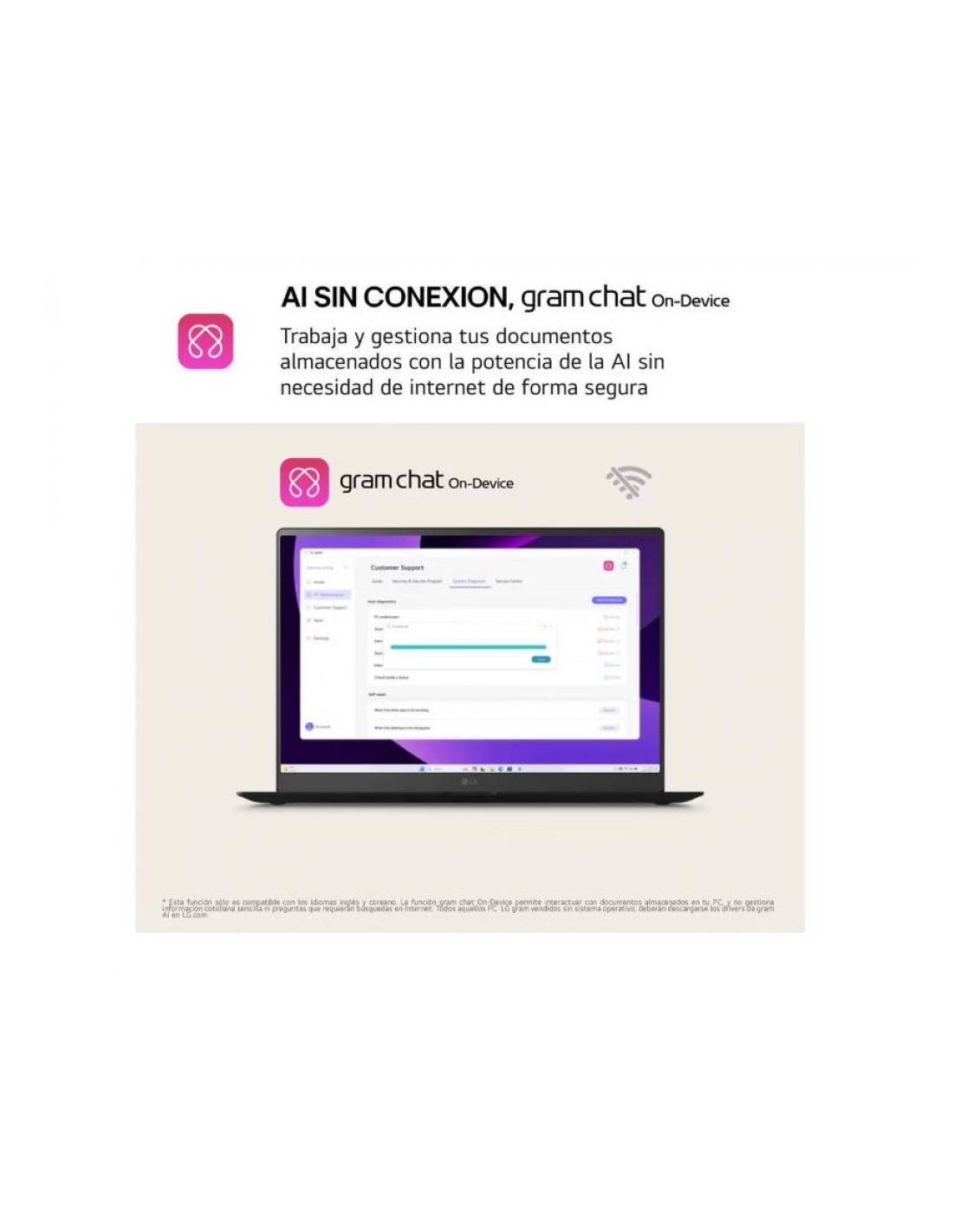 Con el procesador Intel® Core™ Ultra 7, LG gram potencia la AI con las soluciones avanzadas de gram AI: Chat On-Device sin conexión a internet y Chat Cloud basado en GPT-4o.