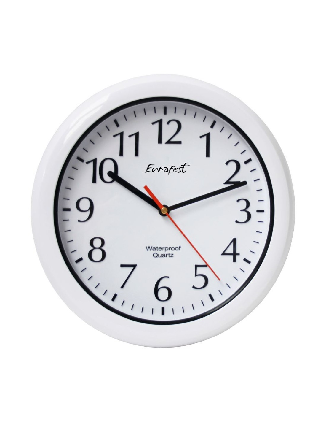 Reloj pared. Resistente al agua. Especial para baños, piscinas y recintos con humedad. Colores: Blanco. 1* pilas incluida. Medida unidad: 30cm.