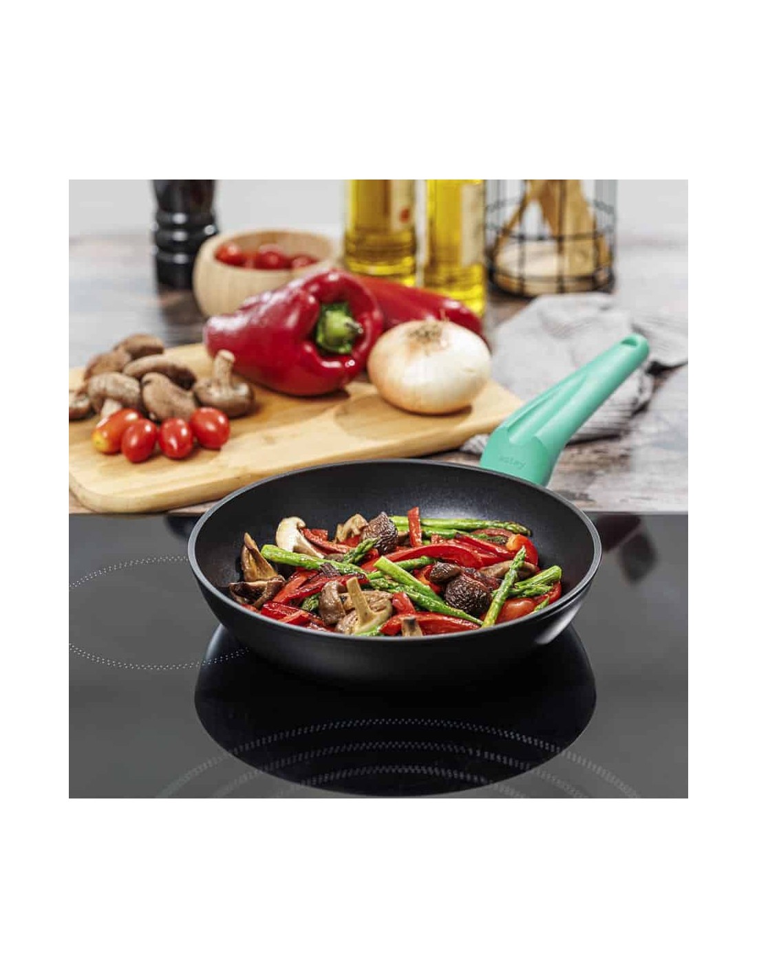 Para dominar la Cocina Asiática, necesitas un plato en equilibrio perfecto, donde cada ingrediente se cocine justo como debe para resaltar su color, forma y sabor naturales. El Wok antiadherente Castey Aquamarine es ligero, fácil de manejar y apto para todo tipo de cocinas, incluso las de inducción. Su revestimiento antiadherente sin PFOA evita que los alimentos se peguen, incluso si usas poco aceite, además, el mango ergonómico soft-touch lo hace muy cómodo de usar.