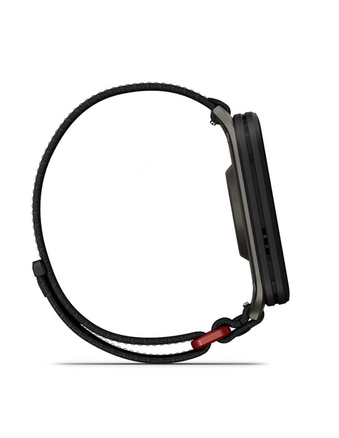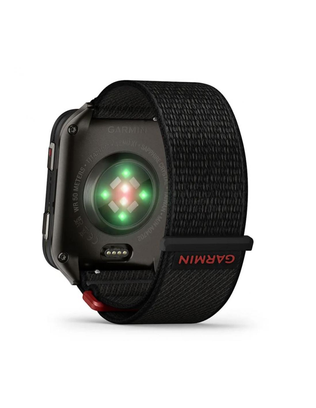 - Consulta tus datos en nuestra pantalla AMOLED de 2″ de mayor tamaño con un cristal de zafiro resistente a los arañazos. Llévalo cómodamente durante todo el día gracias a su ligera caja de titanio, su diseño elegante y su correa de nailon ComfortFit.