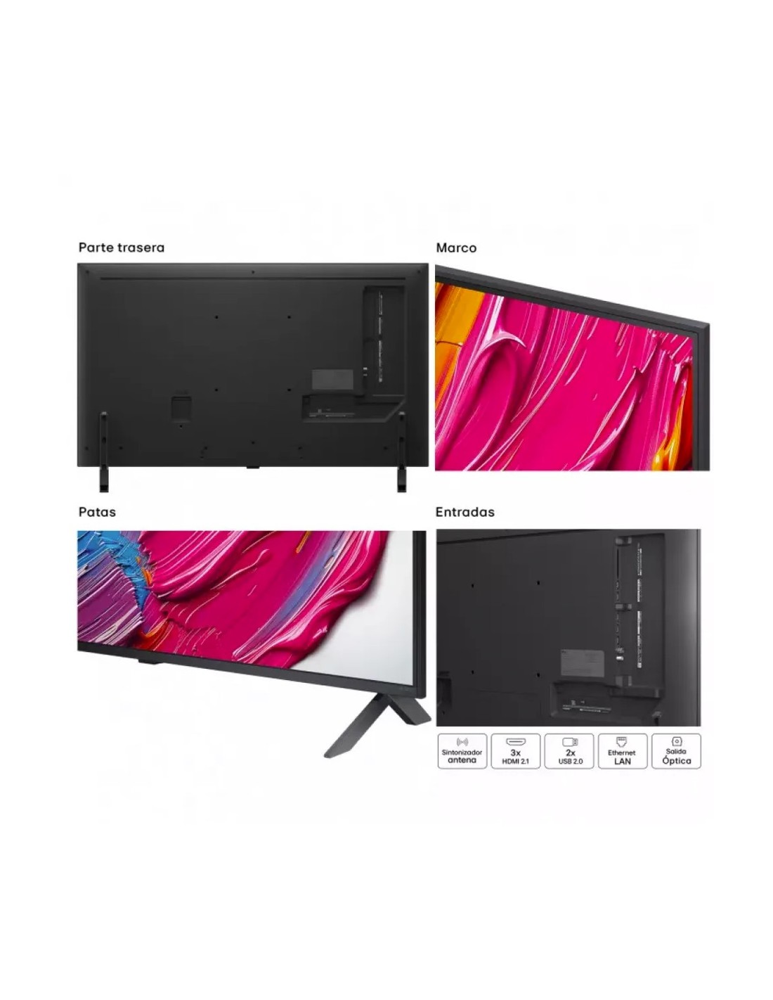 Smart TV webOS 25 que evoluciona a mejor cada año renovándose en tu TV e incorporando las nuevas funciones de la IA y que está preparado para próximos apagones TDT(2). Más inteligente para una personalización y un control del hogar avanzados(3): reconocimiento de voz, recomendación de contenidos, configuración de imagen y sonido, asistente virtual y mando Magic Remote con puntero inalámbrico.