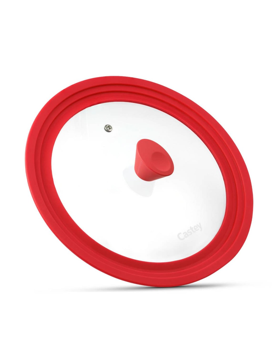 Esta tapa de cristal cuenta con un orificio de ventilación y un anillo de silicona. Su diseño de borde escalonado la hace perfecta para ollas y sartenes con un diámetro que oscile entre 26 y 30 cm.