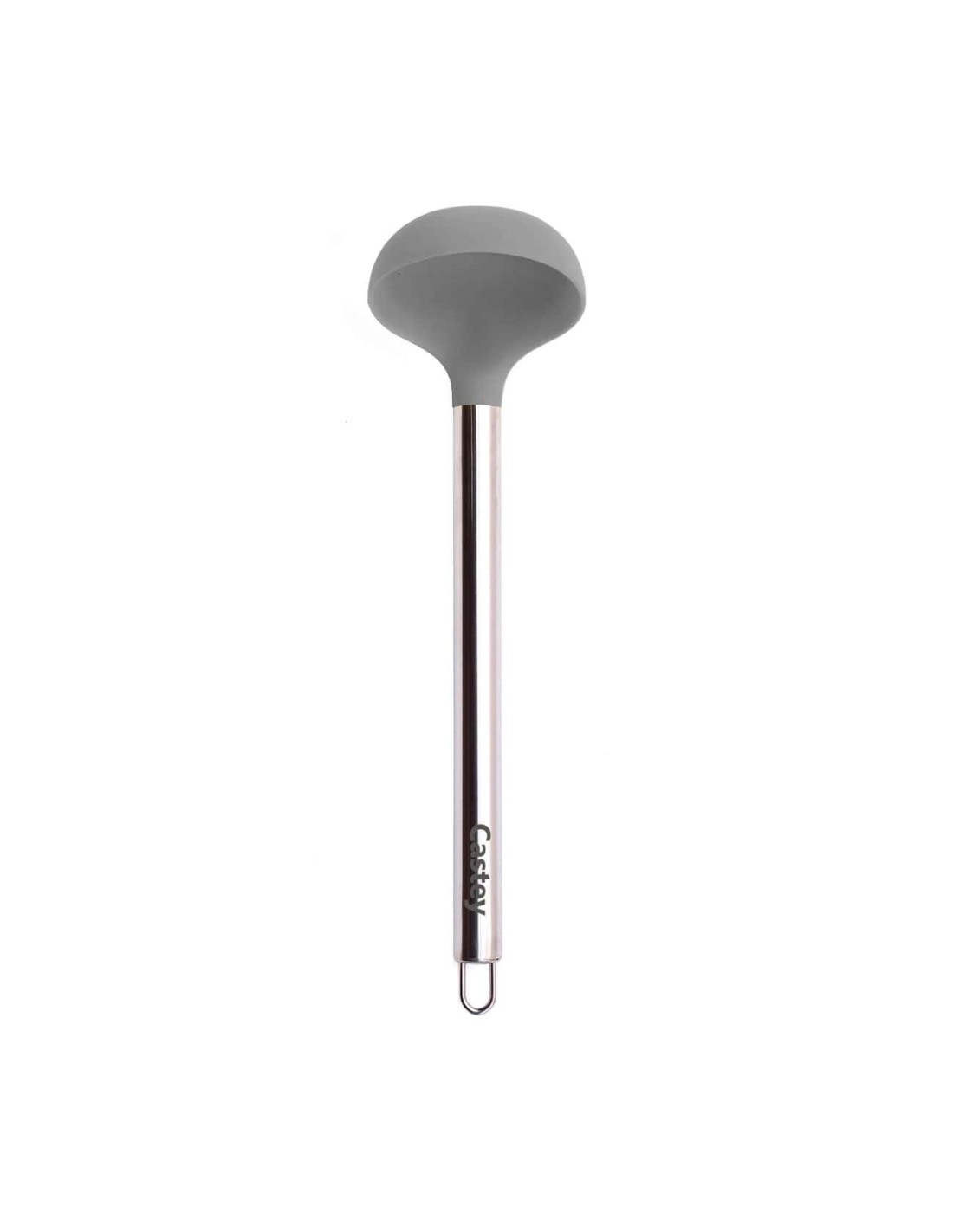 Cucharón con cuerpo de silicona y mango inoxidable.